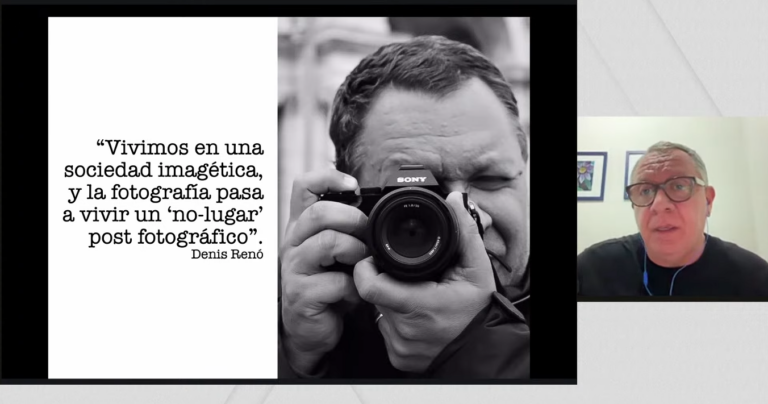 En su intervención, compartió su experiencia profesional en el campo del fotorreportaje, invitando a reflexionar sobre los nuevos enfoques narrativos y el papel de la inteligencia artificial en la construcción de relatos visuales contemporáneos.